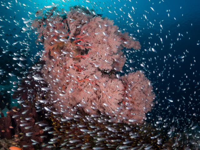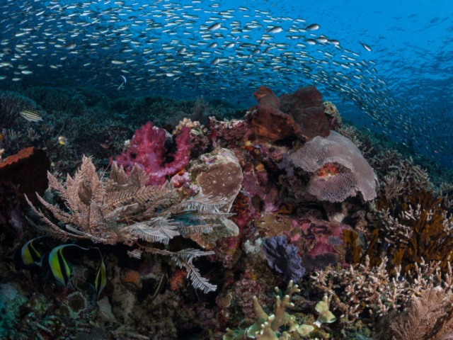 Komodo is located at the boundary between the southern Indian and northern Pacific oceans. Powerful tidal currents draw nutrient-rich Indian Ocean seawater to the northern reaches of the park. This confluence creates a remarkable variety of species to mix here. The end result is a stunning diversity of habitats and species in a relatively small area. Komodo National Park is home to more than 1,000 species of fish, 260 species of coral.